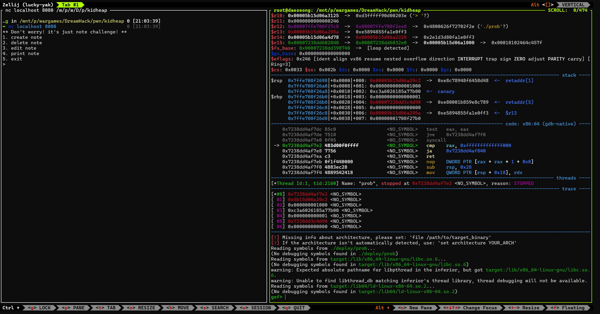 잘 어태치된것을 볼 수 있다. 디버깅도 잘 되고 힙 관련 명령어들도 잘 먹는다.